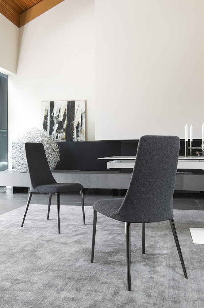 Chaise modèle ETOILE, à structure en acier tubulaire et assise/dossier rembourrés et revêtus.L’utilisation de technologies de fabrication d’avant-garde a permis de réaliser une coque profilée en mousse de polyuréthane injectée à froid, un matériau qui conserve ses caractéristiques dans le temps.Très confortable, l’assise présente un profil fin et arrondi caractérisé par des lignes bien définies. A voir sur notre boutique en ligne.Les pieds en acier permettent d’associer cette chaise design, pour le coin-repas avec une table du même matériau. Découvrez toutes les combinaisons chromatiques, en visitant notre magasin de chaises modernes sur internet.