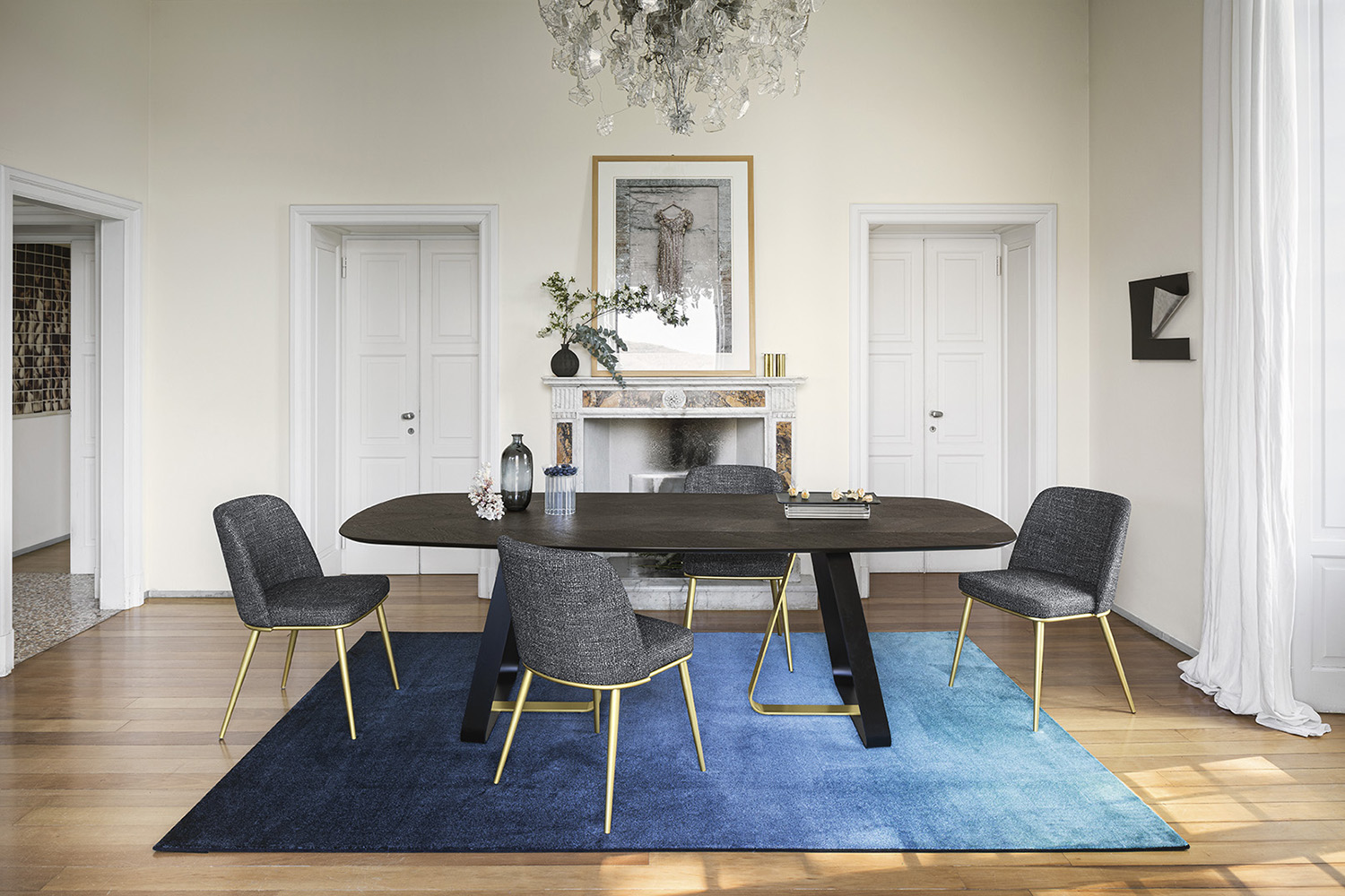 FOYER软垫椅子给那些沉迷其中的人带来舒适和放松的感觉。它采用使用弧形胶合板的软垫外壳,座部柔软带有松紧带,并由精致的四足金属底座进行支撑。